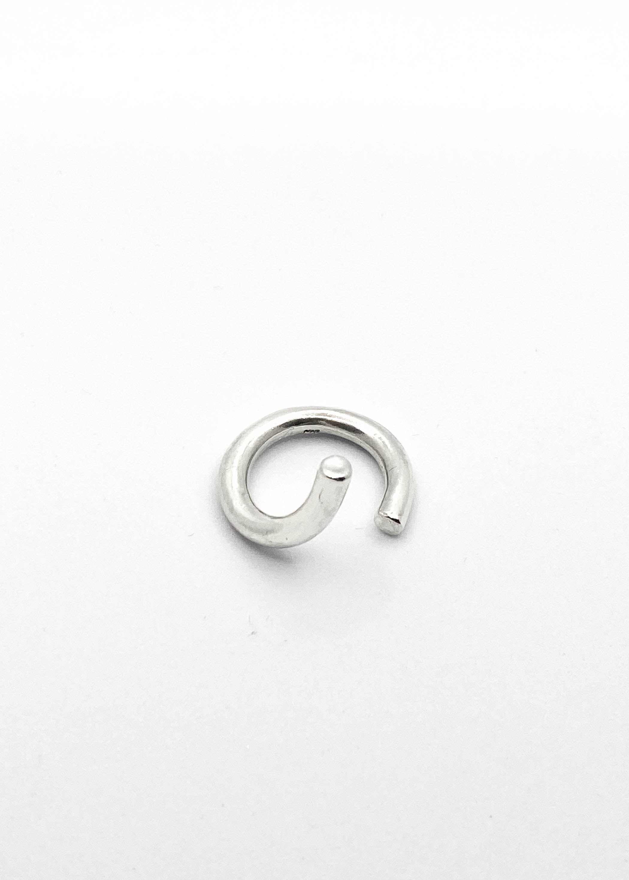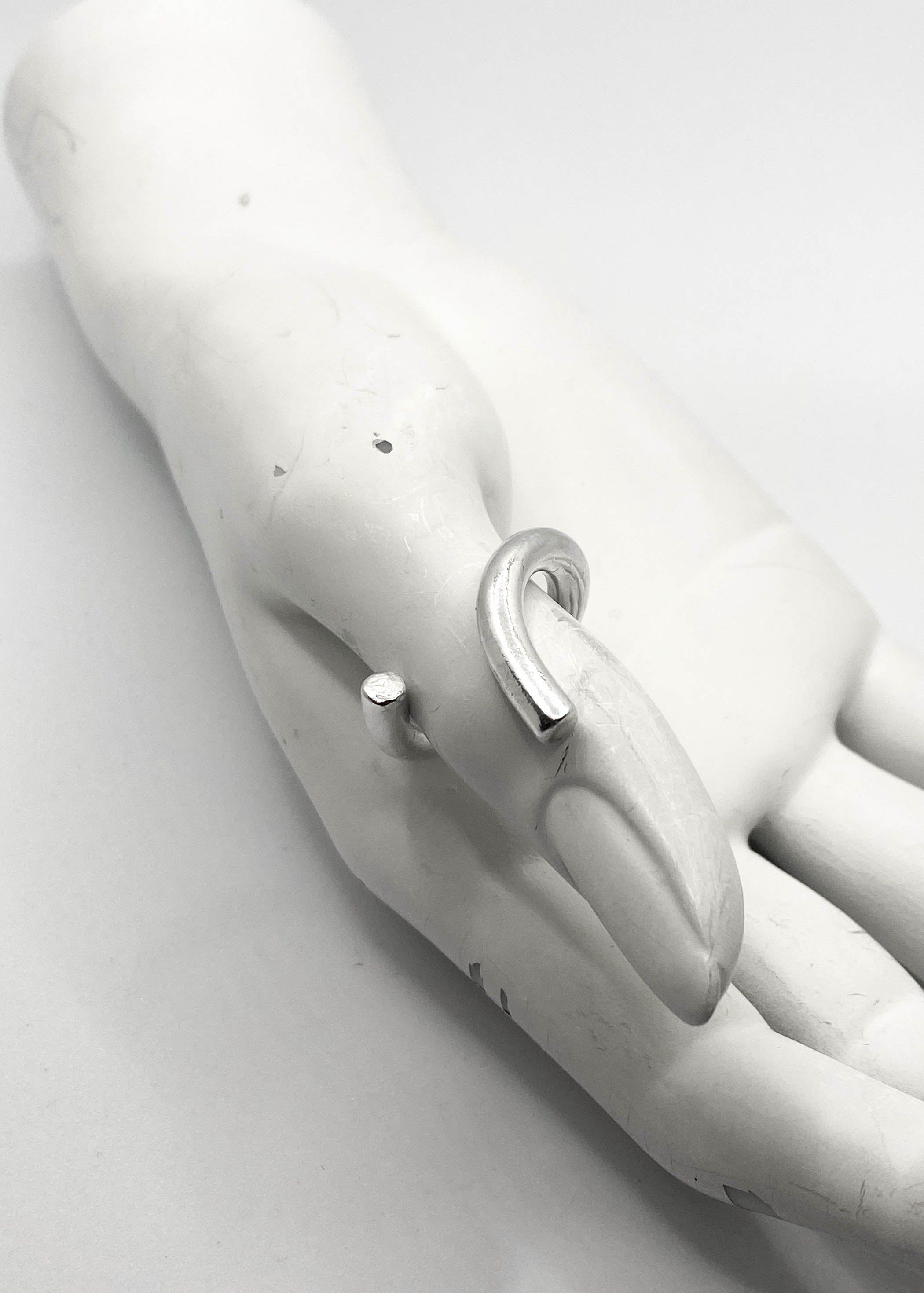 Sausage ring by Heldur. It has been hand made in Tallinn from 925 silver and has a minimal raw style. Every ring has a slight difference as every piece is hand cut and finished.
