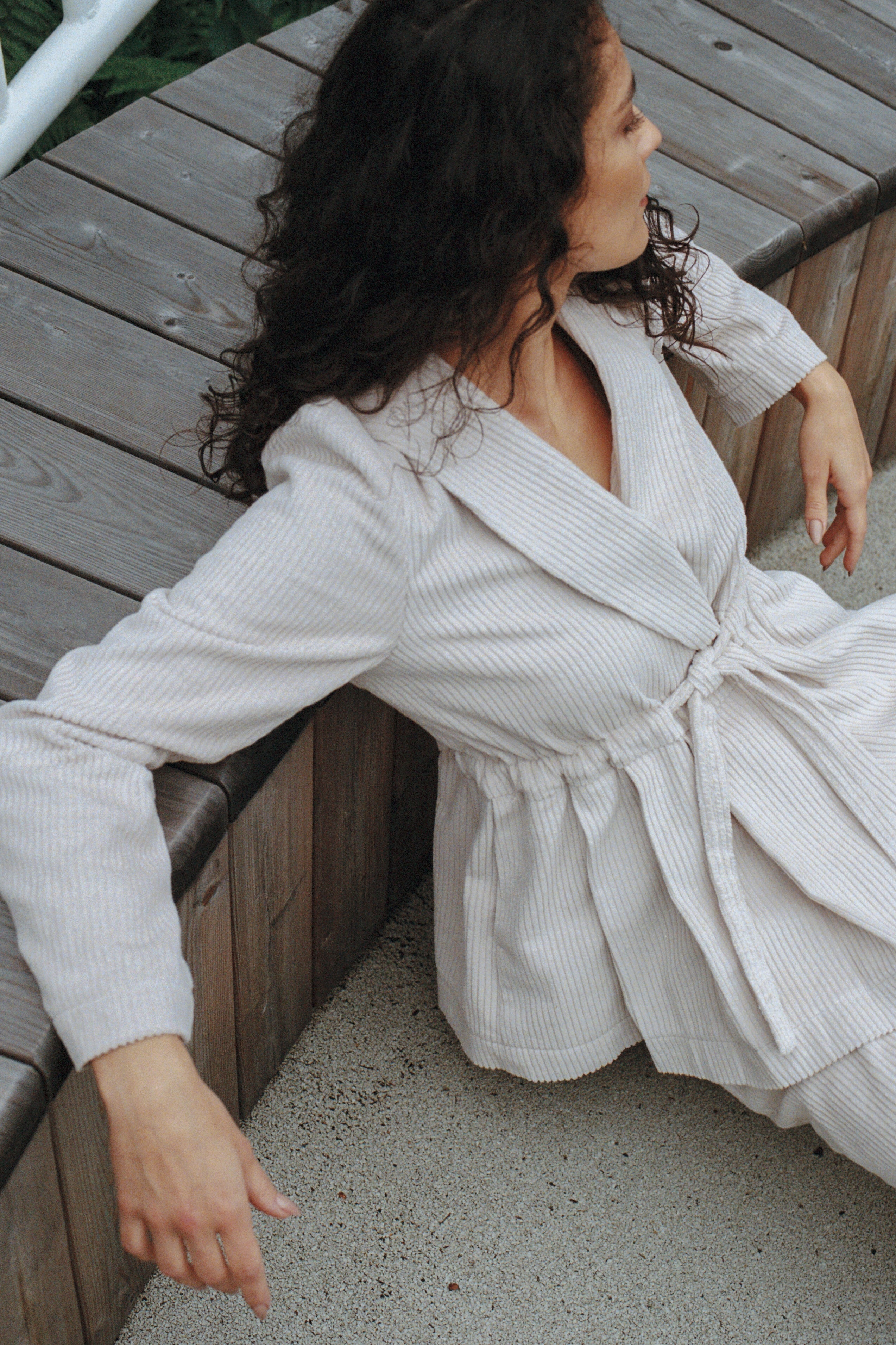 Sophie's jacket is the epitome of timeless comfort and sophistication. It pairs seamlessly with Elise trousers for a tailored suit, yet effortlessly transitions to a more casual ensemble when worn with dresses or jeans.