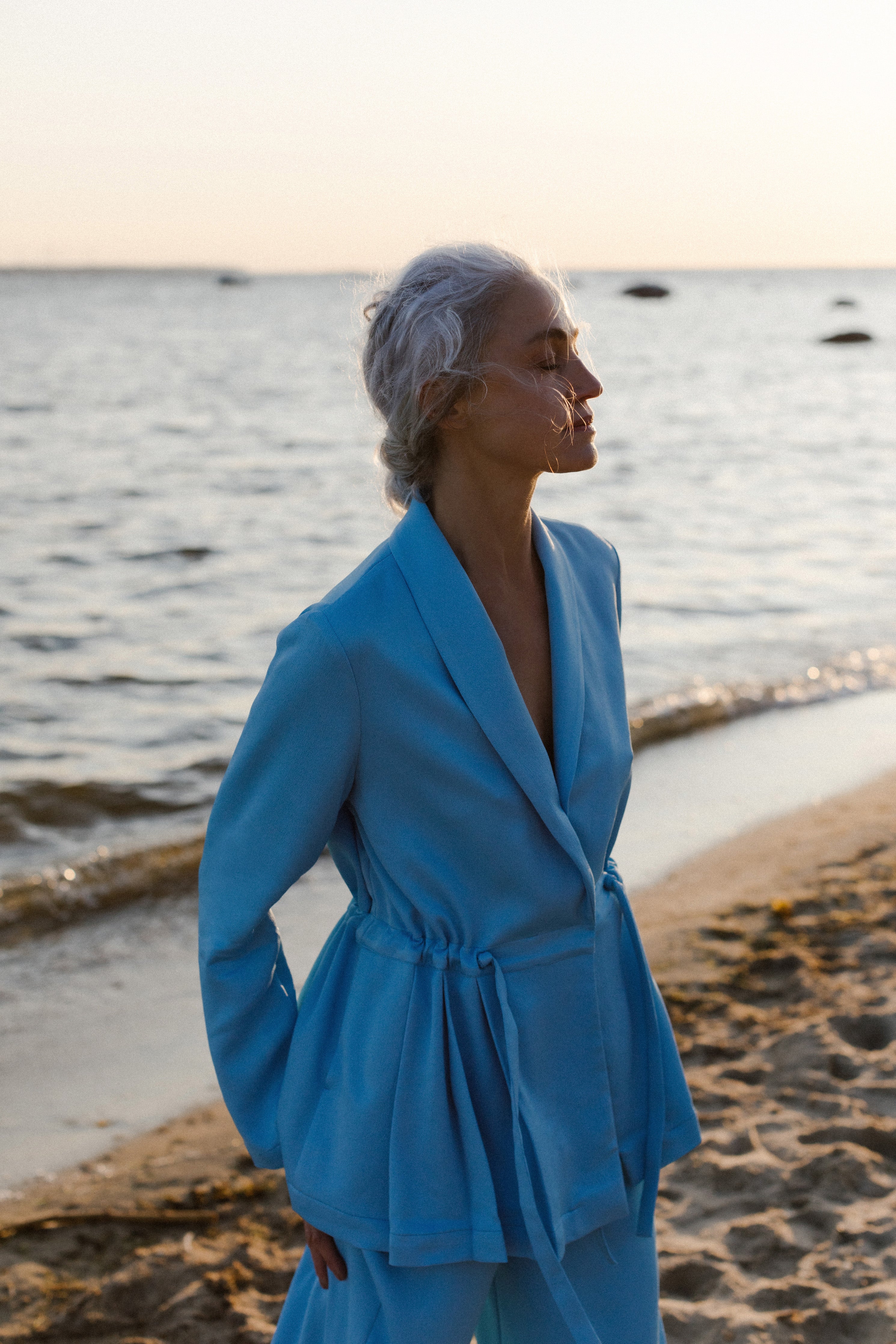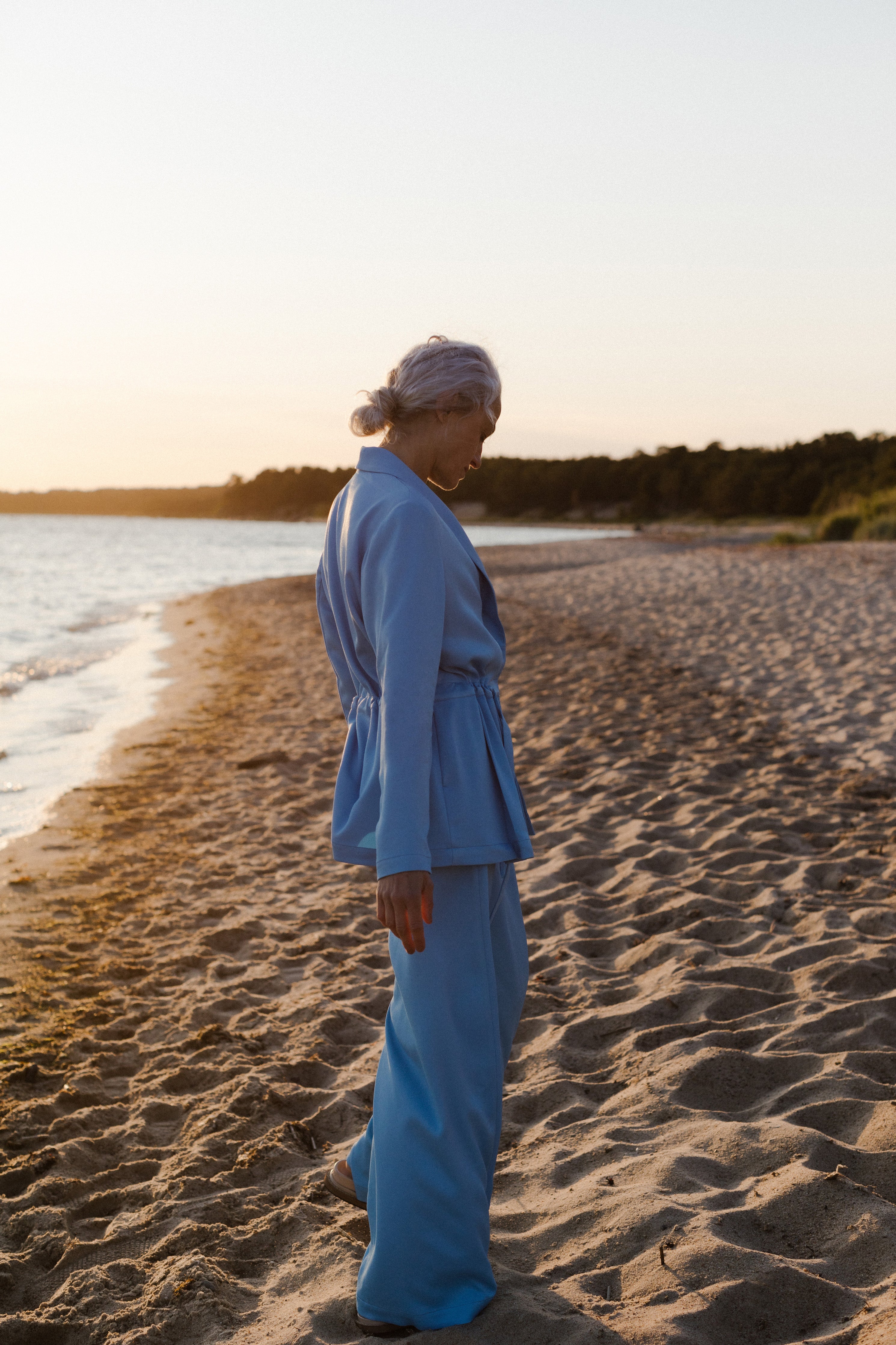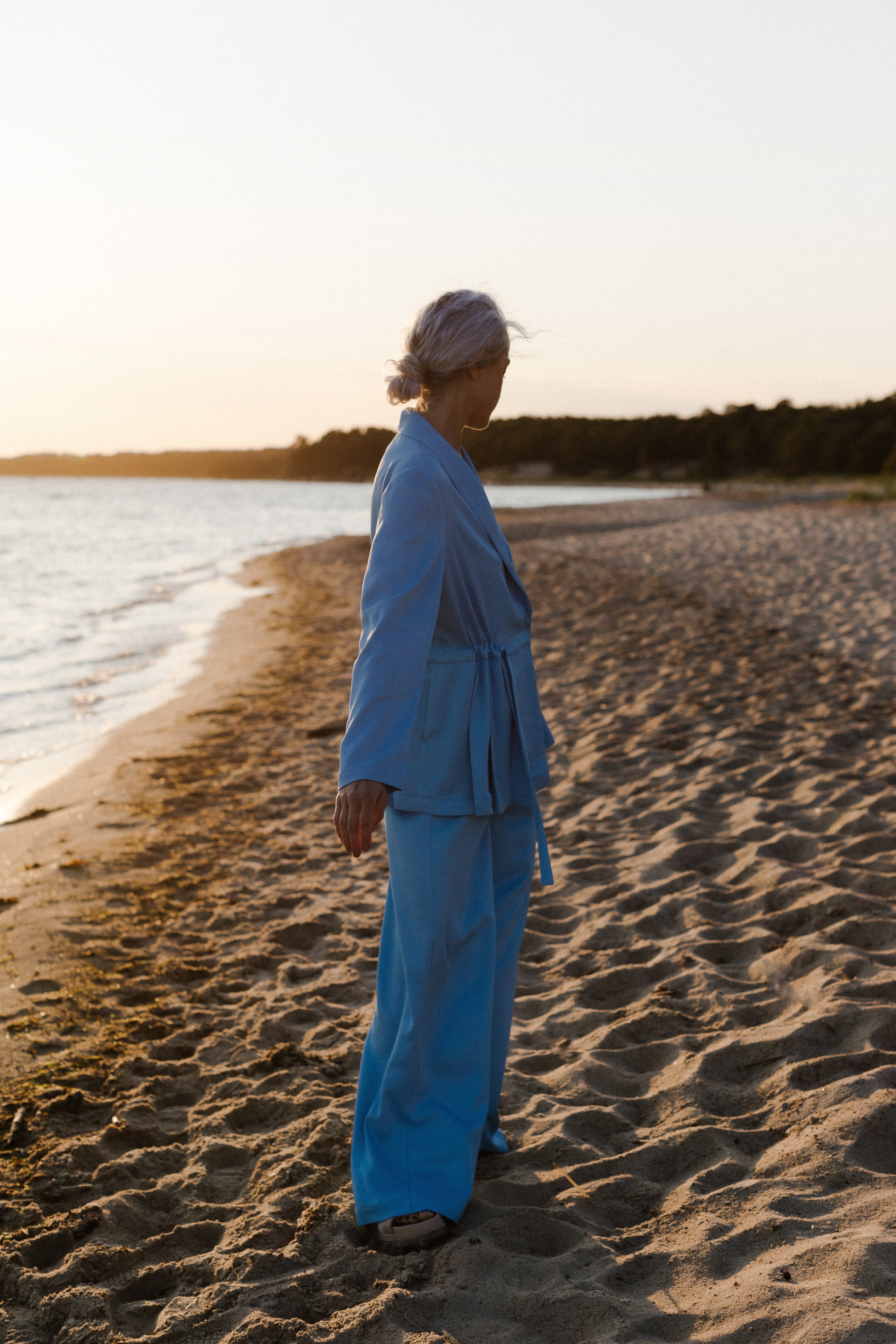 Our Chloe trousers strike the perfect balance between sophistication and comfort. What's even better is that they feature an elastic waistband, making it a breeze to pair them with a basic T-shirt for a casual look or elevate the style by combining them with the Sophie jacket for a suave suit ensemble. With their wide leg and silky silhouette, these trousers offer both fashion and comfort.