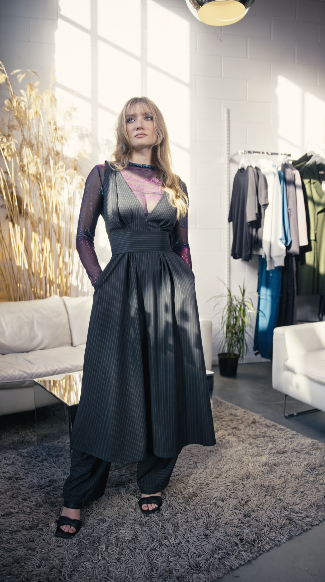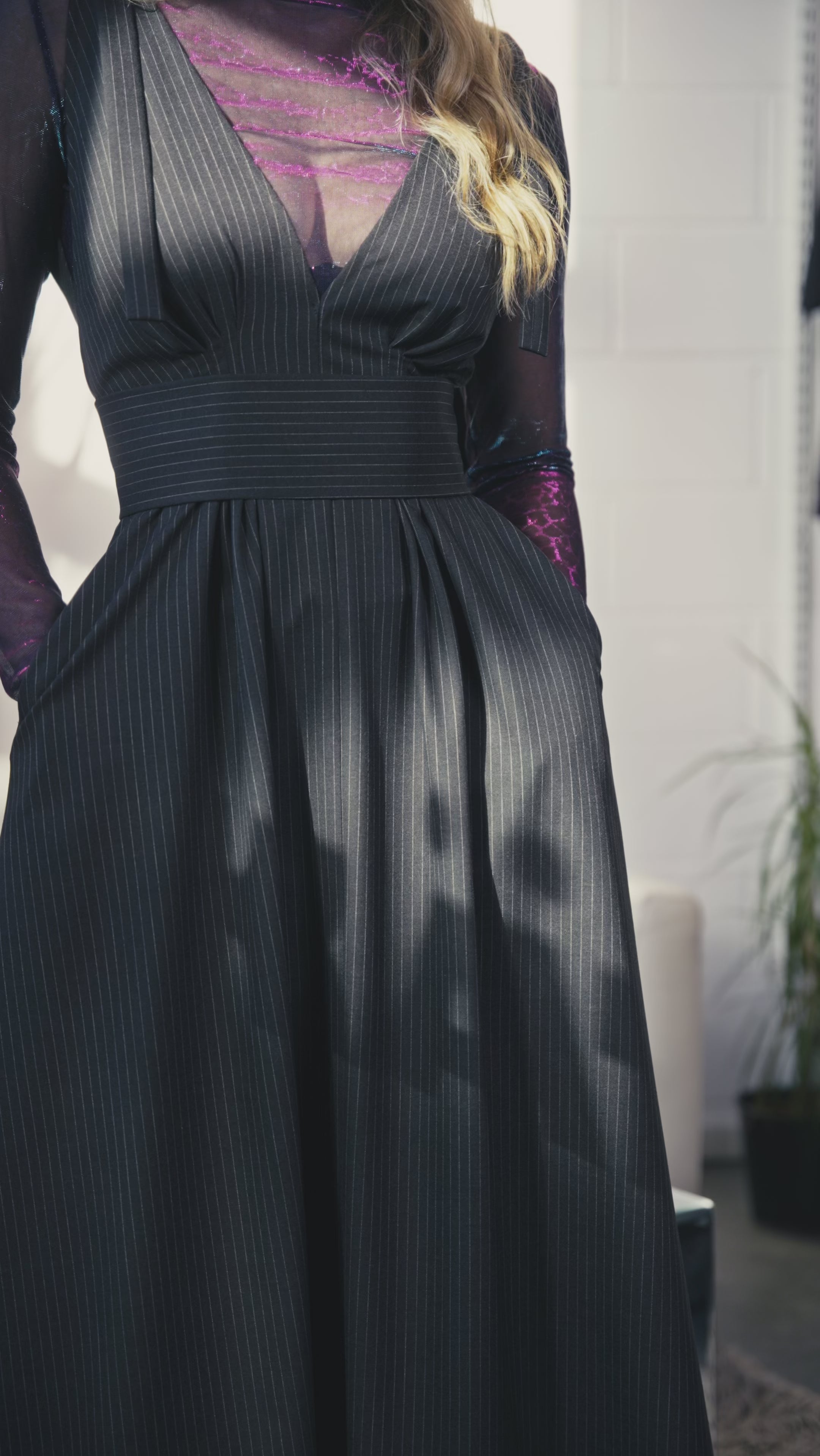 LUCY is the perfect dress for every occasion, now available in an elegant striped dark grey! Pair it with sandals for a relaxed vibe or add a belt and heels for a more sophisticated, festive look. Fashion enthusiasts love to style it with TARA trousers for a unique ensemble.