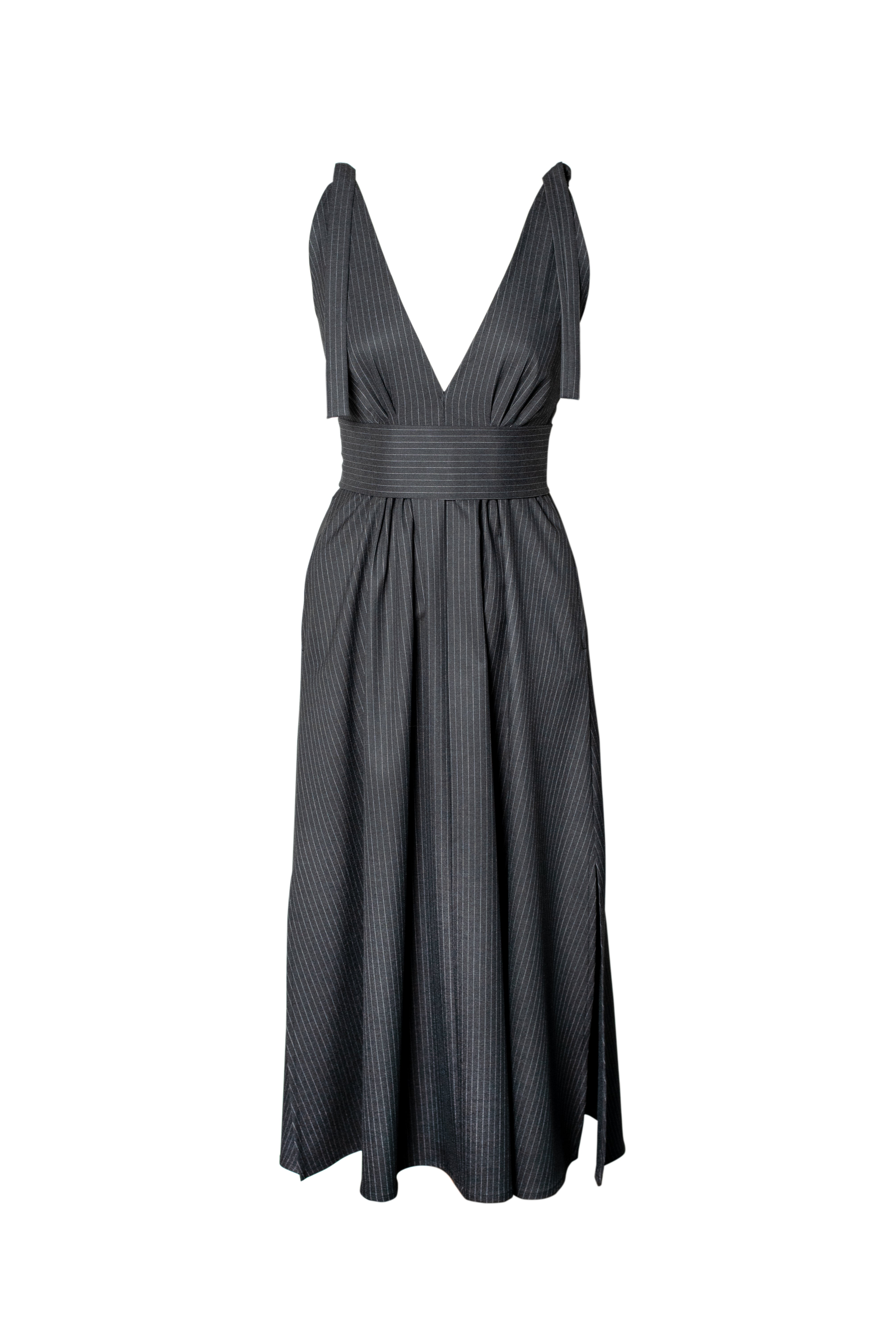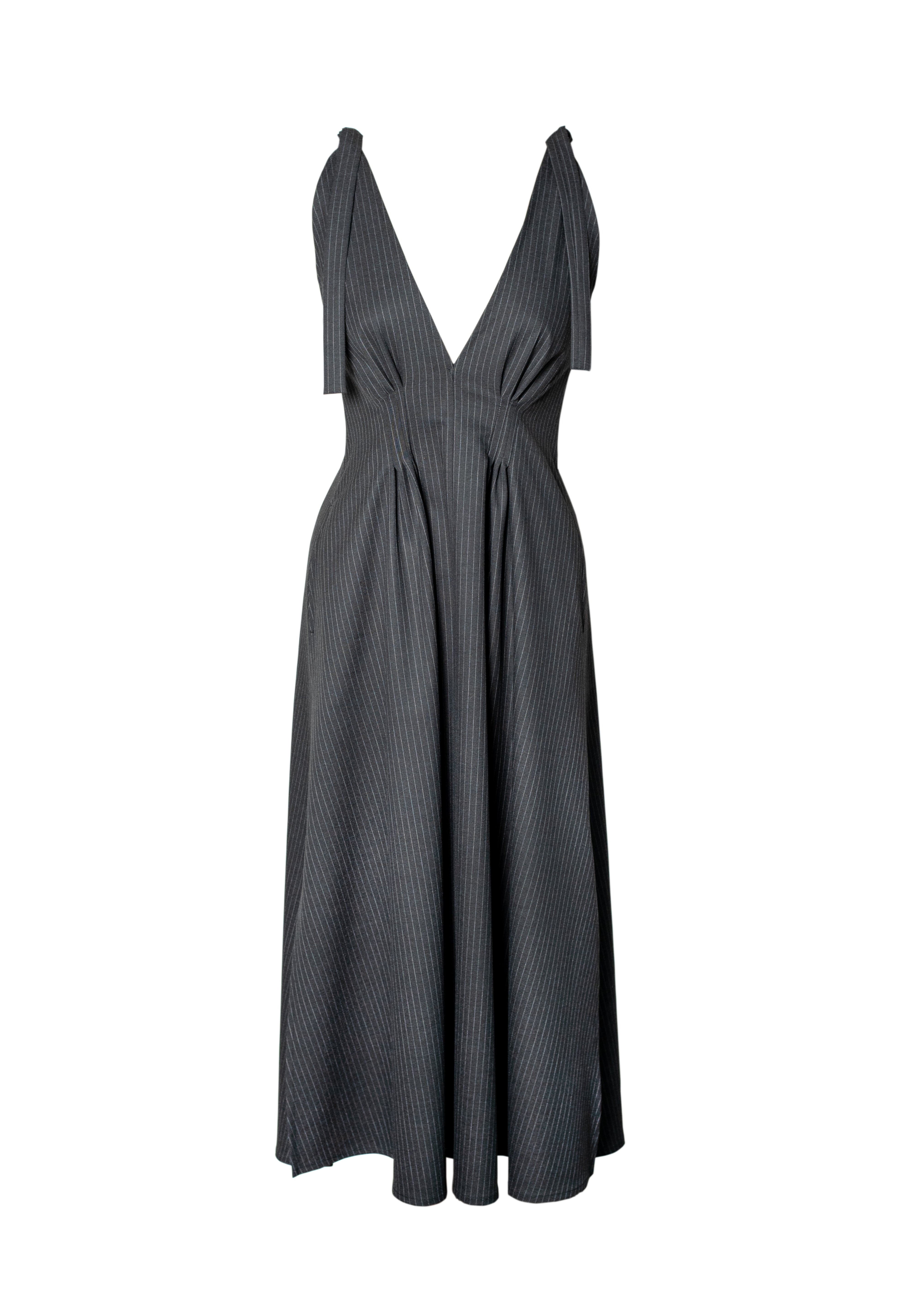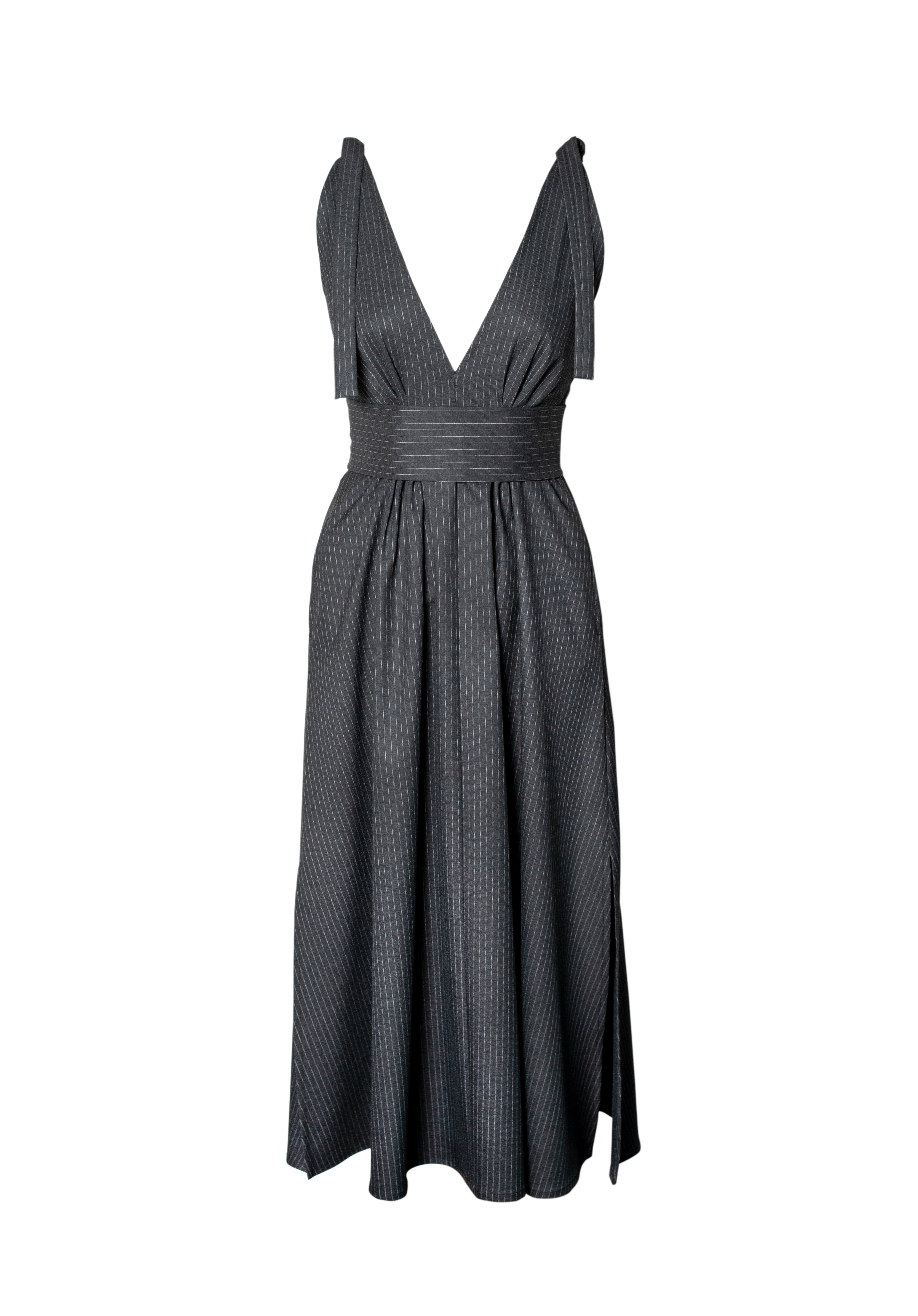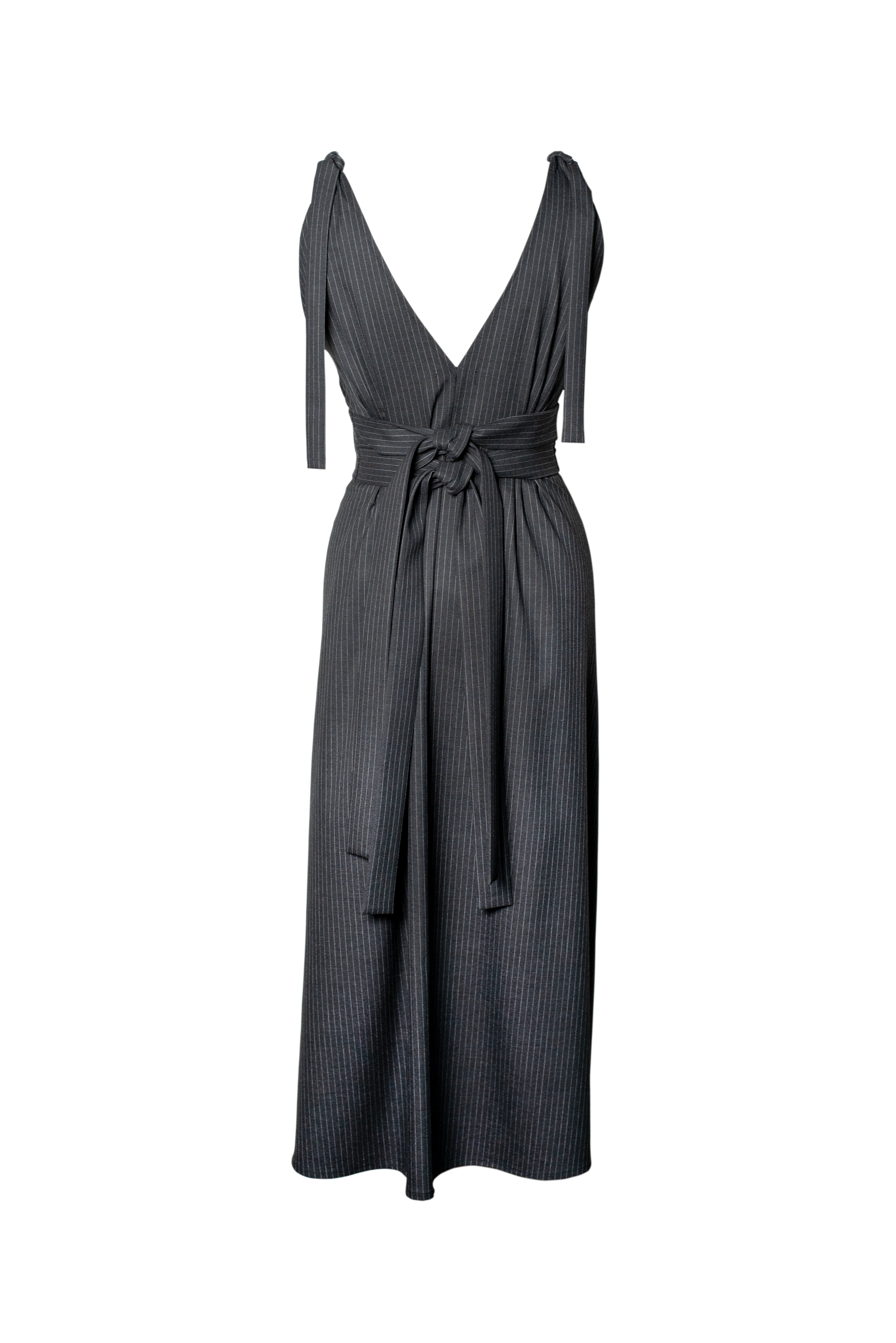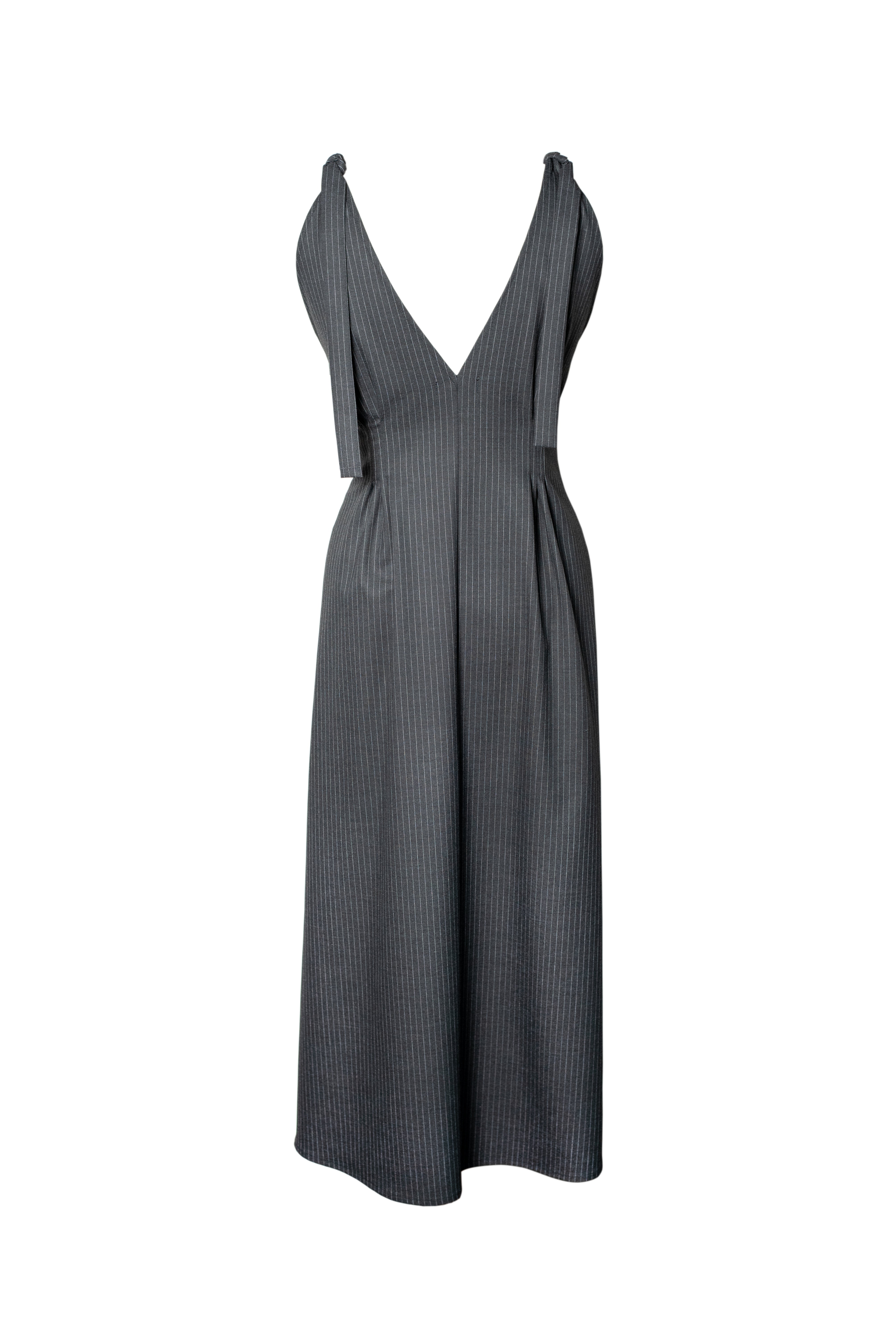 LUCY Pinstripe Midi Dress - Dark Grey