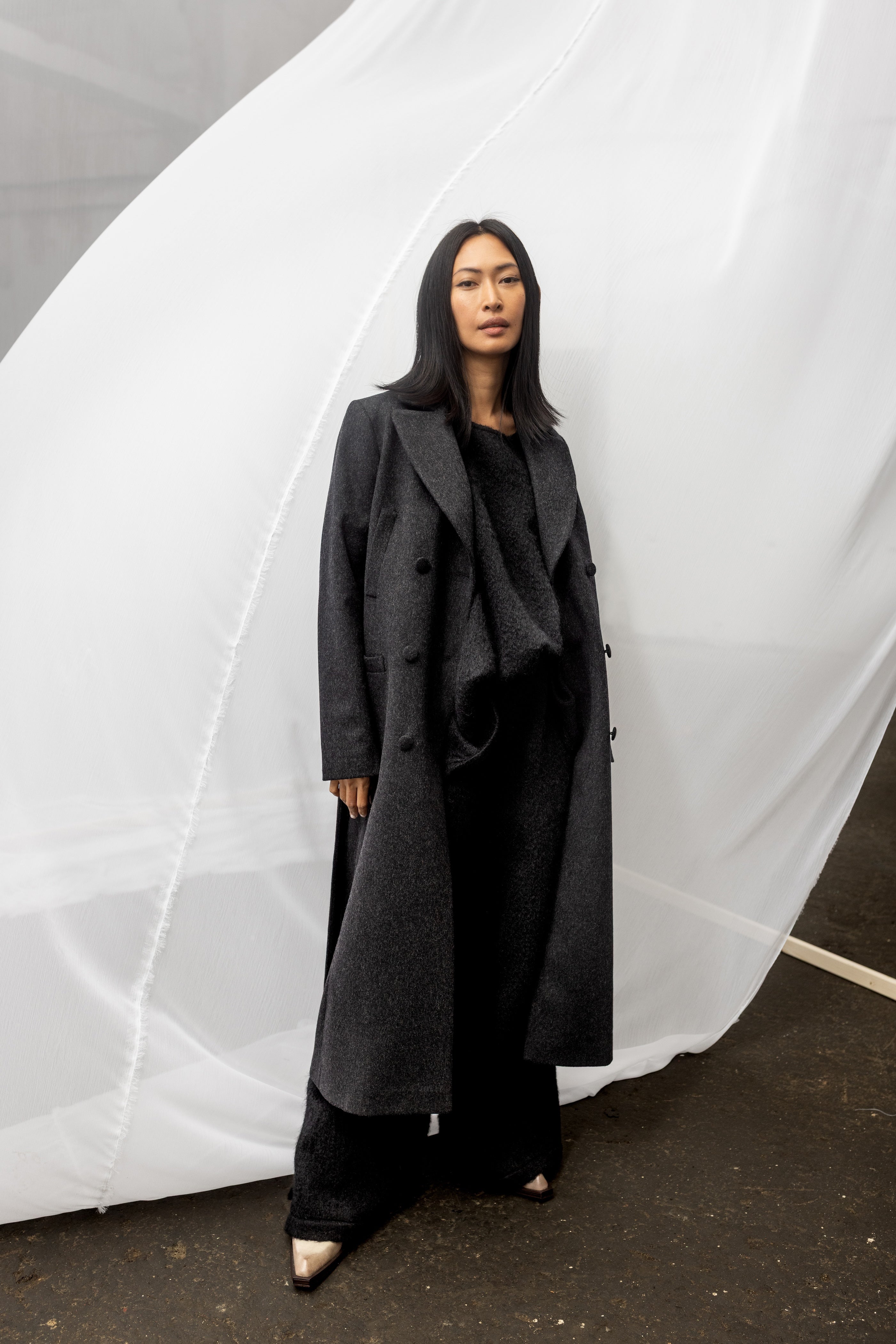 MAGIE Double Breasted Wool Coat - Black