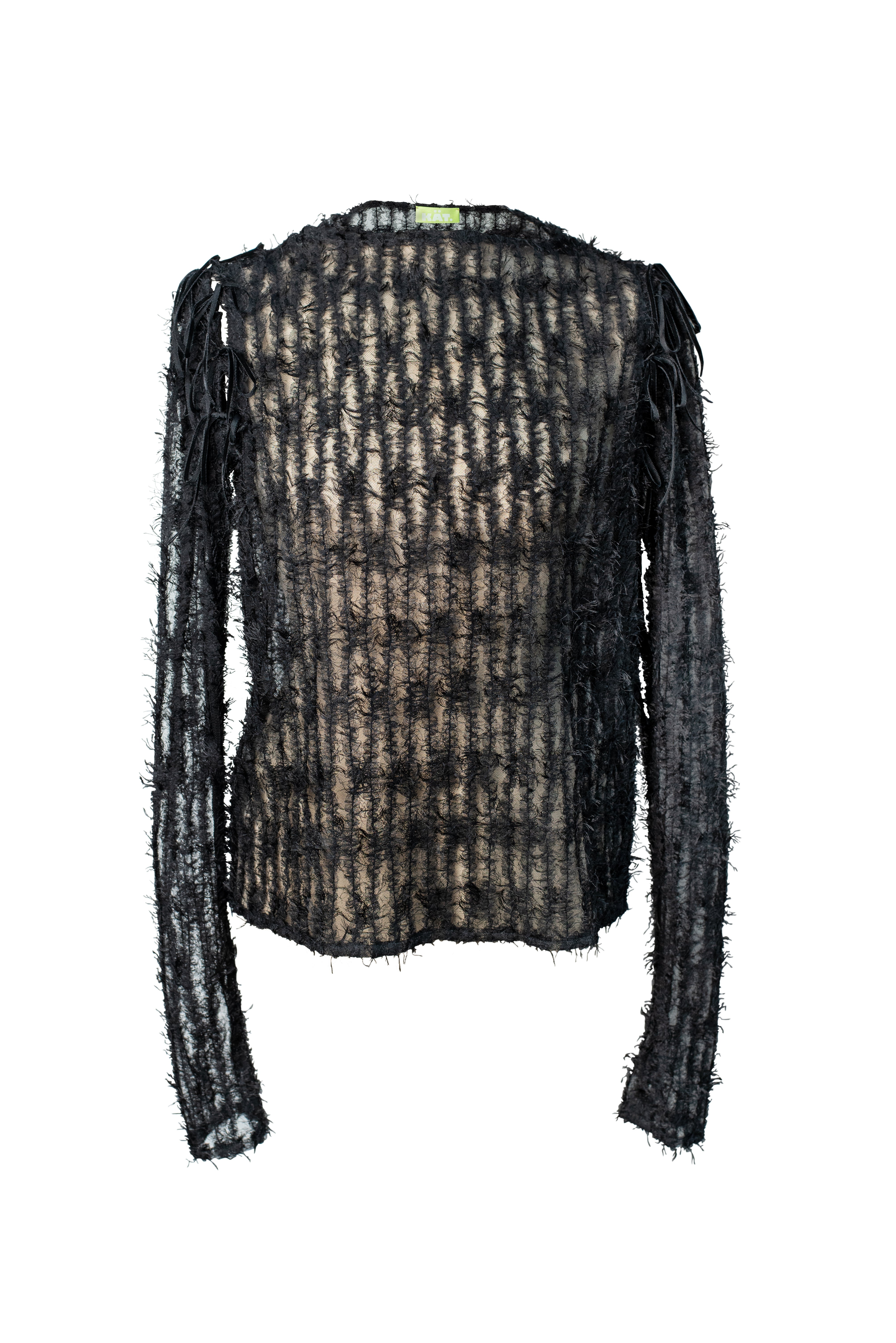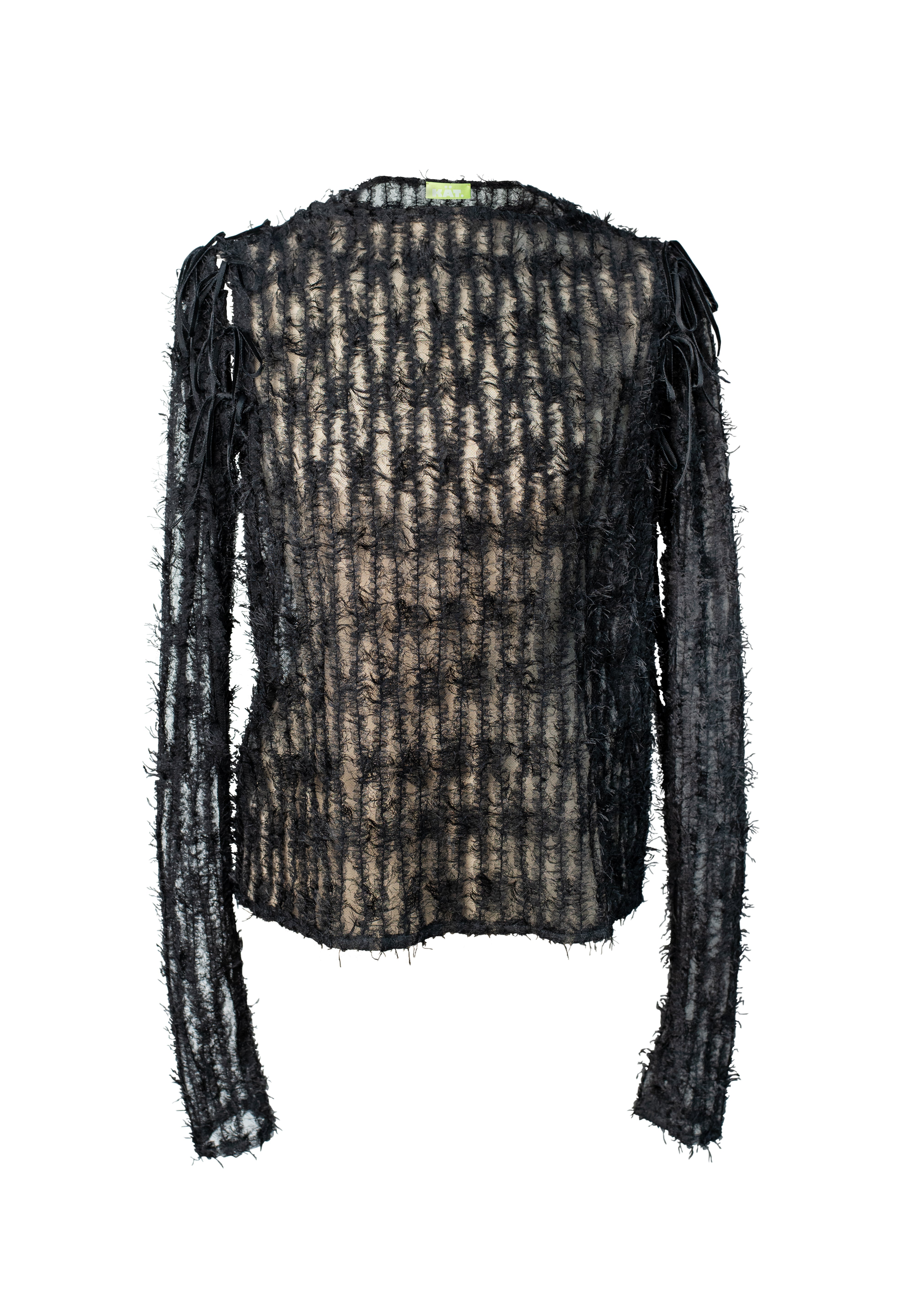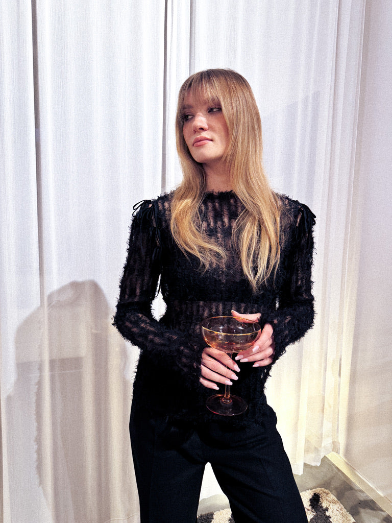 A statement in texture and lightness, the POESIA Top plays with contrast — soft yet striking. The semi-sheer, fluffy fabric creates a dynamic surface that catches the eye without overpowering. Designed with removable sleeves, it adapts effortlessly to your mood or styling, offering versatility for both layered looks and bold standalone wear