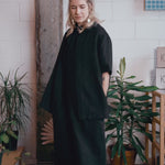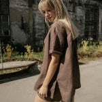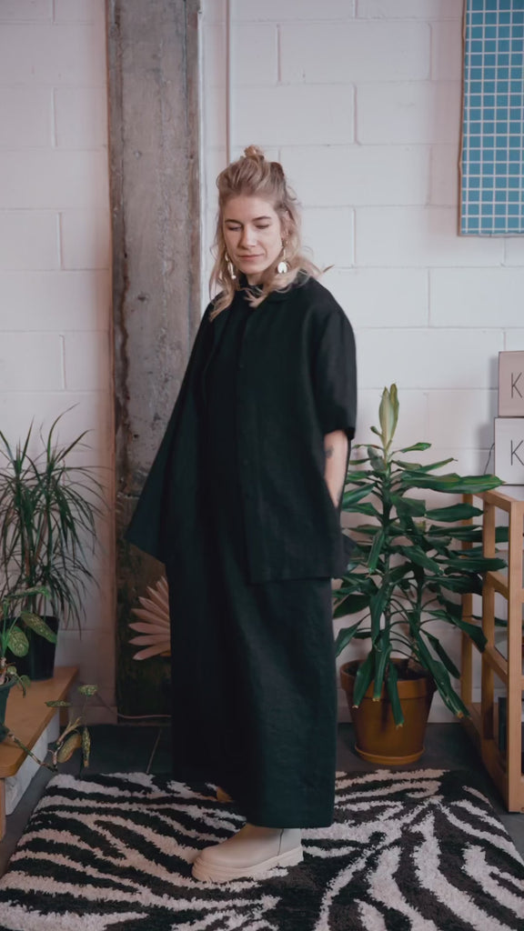 Our DUDE camp collar shirt has a boxy fit and short sleeves, making it breezy and comfortable in the summer heat but also make a nice layering top over fine knits in back-to-work situations. Inspired by menswear, DUDE is made of linen fabric to fit with KÄTwoman wardrobe.