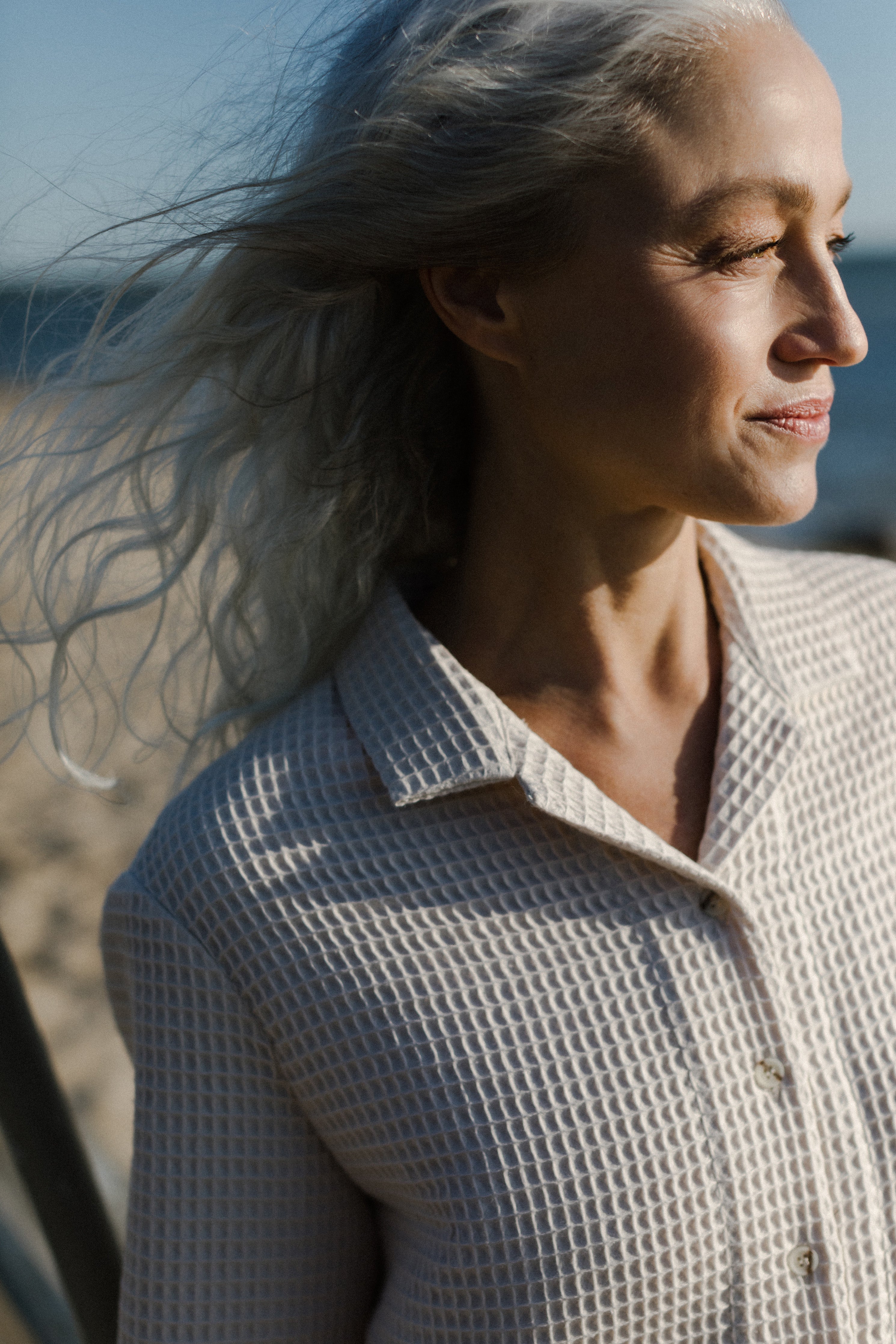 Introducing our DUDE camp collar shirt—a fusion of relaxed fit and airy design, perfect for those scorching summer days. Crafted with a boxy silhouette and short sleeves, it offers unparalleled comfort in the heat. The waffle fabric not only enhances breathability but also efficiently dries your skin, rendering the need for a towel almost obsolete during your beach adventures. Drawing inspiration from classic menswear, DUDE is seamlessly integrated into the KÄTwoman wardrobe, crafted from premium cotton fabric for a luxurious feel. For a coordinated ensemble, we recommend pairing it with our matching LIN shorts.