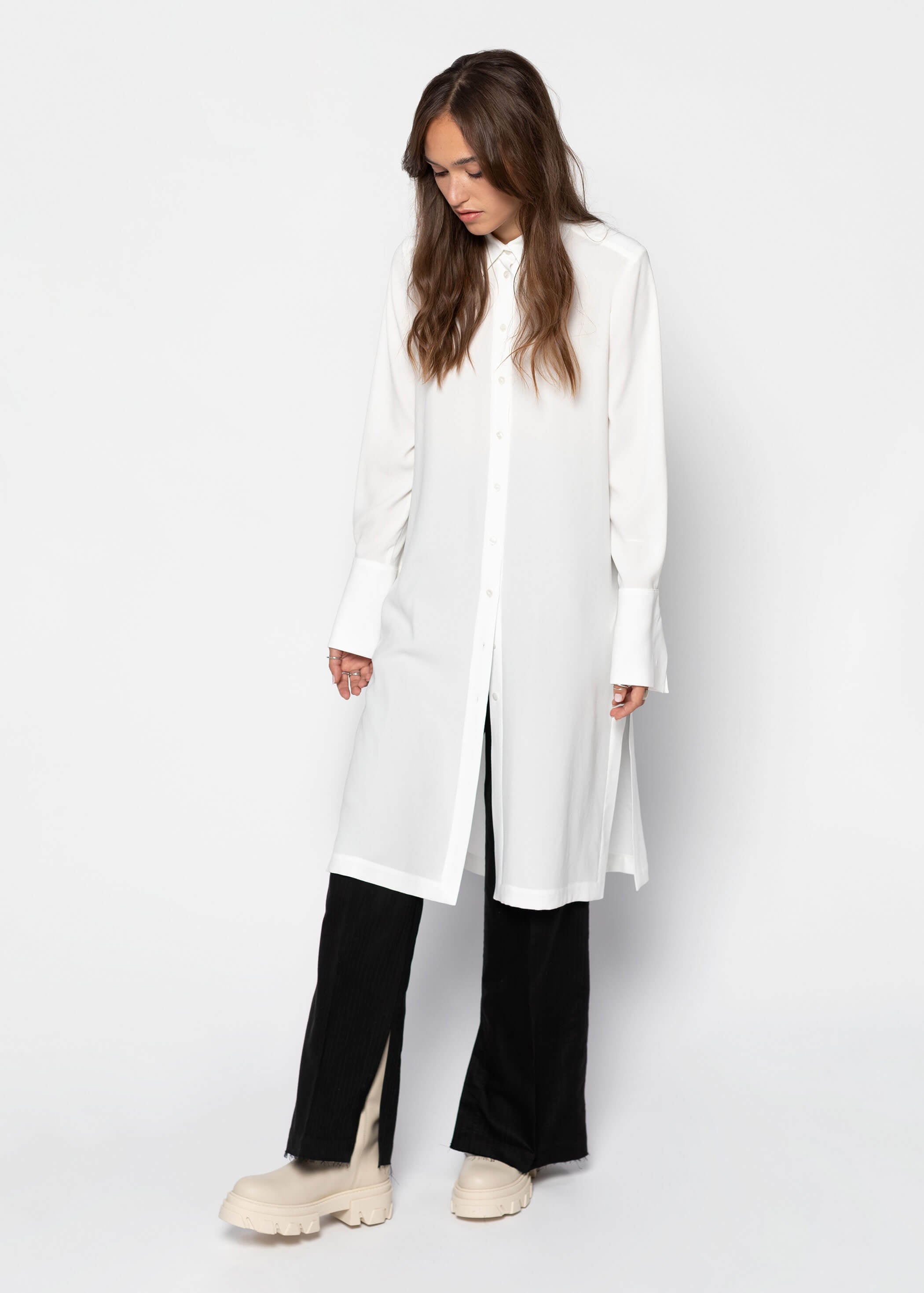 MONA long shirt is a must-have! Wear it traditionally over wide trousers or flaunt it as a chic summer dress. Its flowy, breathable fabric makes it perfect for layering enthusiasts!"