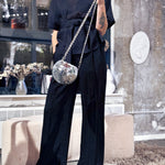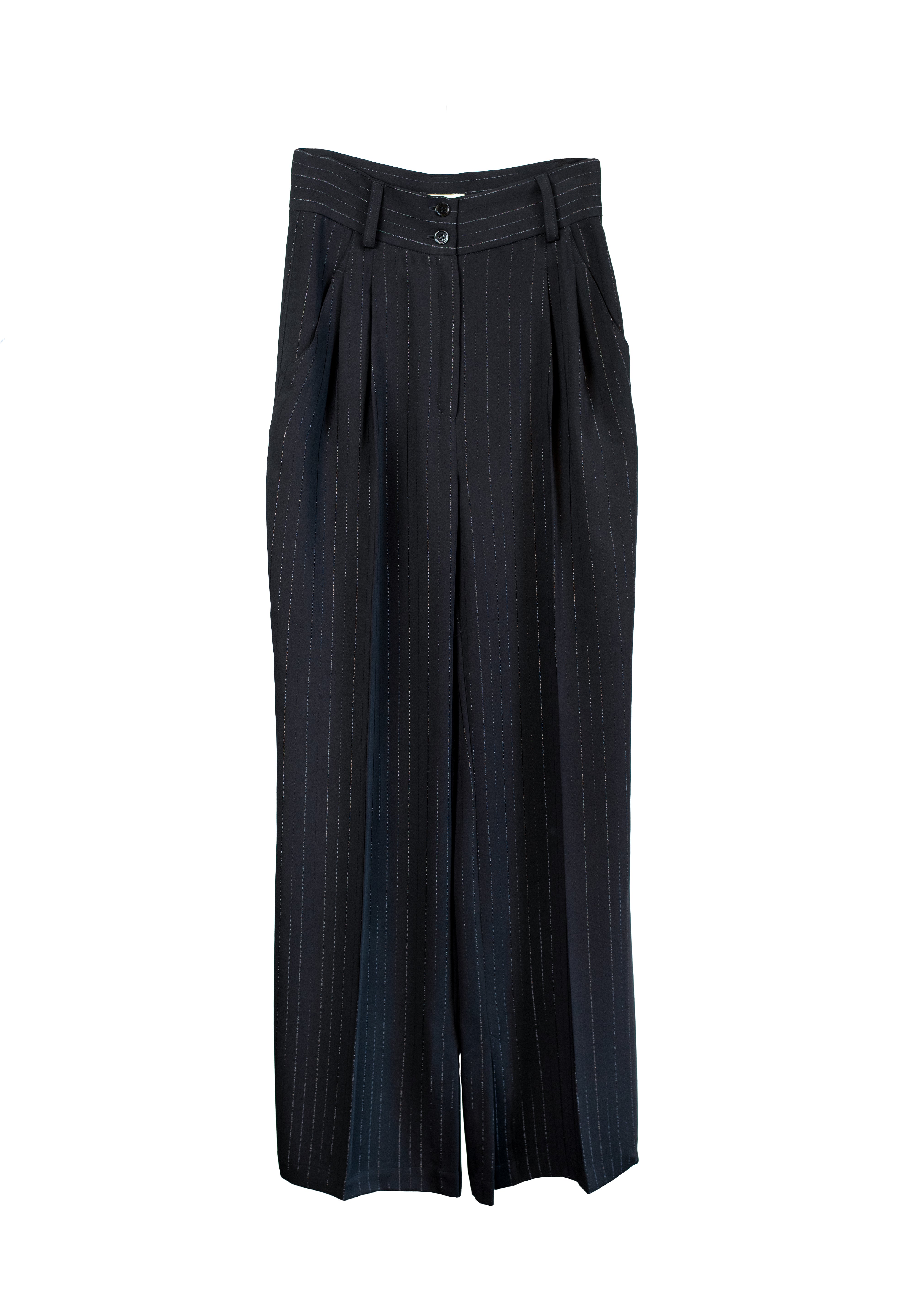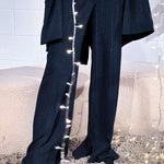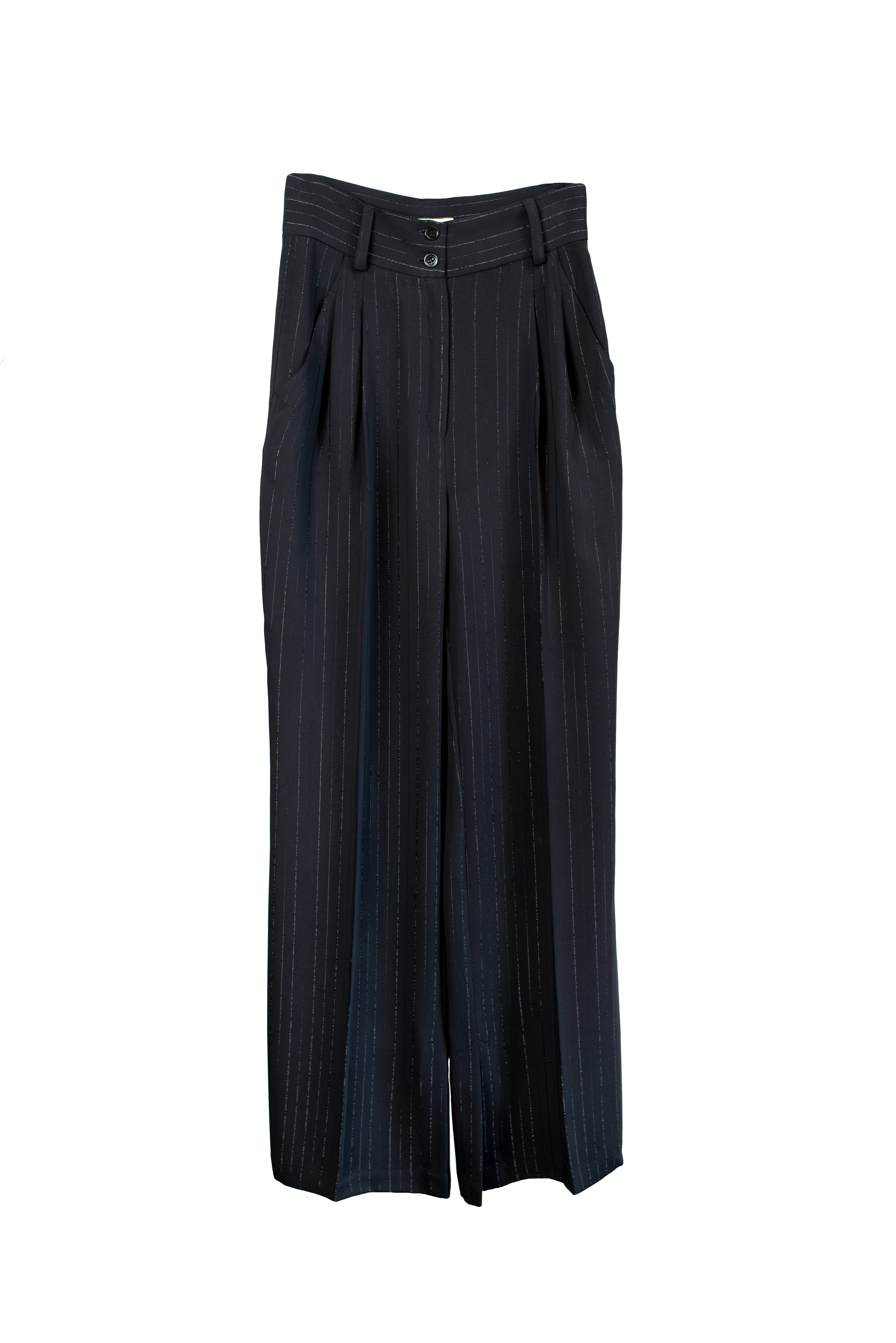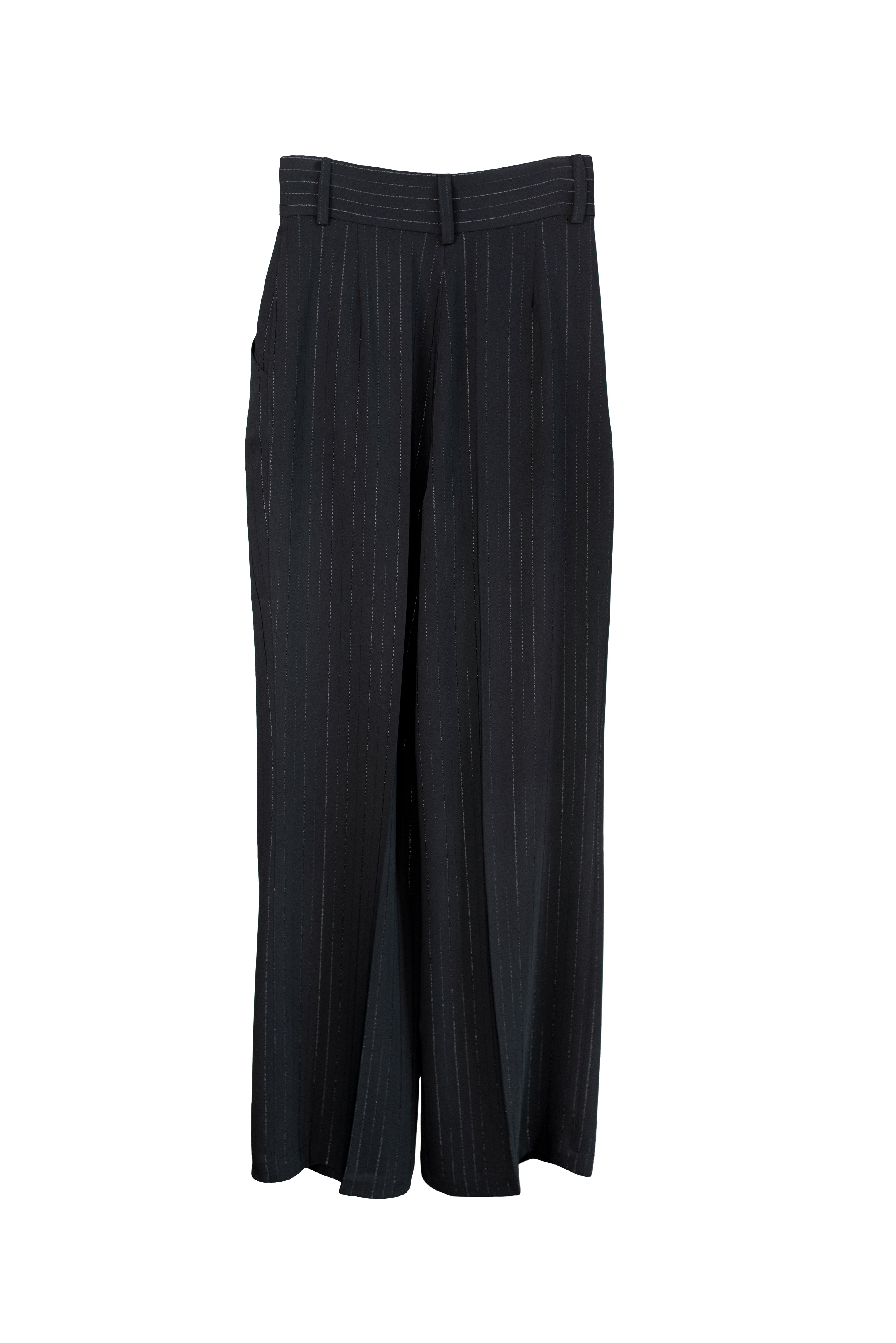 LYNA Pants now in subtly shimmering pinstripe fabric as the matching WIIL Blazer and MARGOT Vest. They’re designed with a relaxed drape and side slits that open as you walk — a detail that gives them even more laid-back vibe. The tailored waistband and soft pleats balance structure and flow, making them easy to style for both polished and more festive occasions.