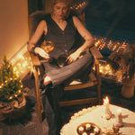 These relaxed, wide-leg pants are designed with an adjustable waist, offering both comfort and effortless style. The sleek dark grey pinstripe pattern adds a touch of sophistication, while oversized patch pockets bring a hint of utility and charm. Pair them with our MARGOT pinstripe vest for a more festive and polished look—perfect for versatile styling from casual outings to special occasions!